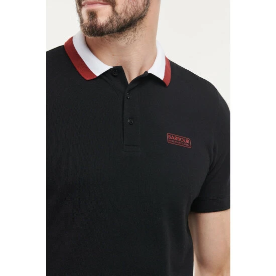 Ampere cotton piqué polo with bold tipping to collar. Featuring a three-button front fastening and silicone branding logo to the chest left as worn.
