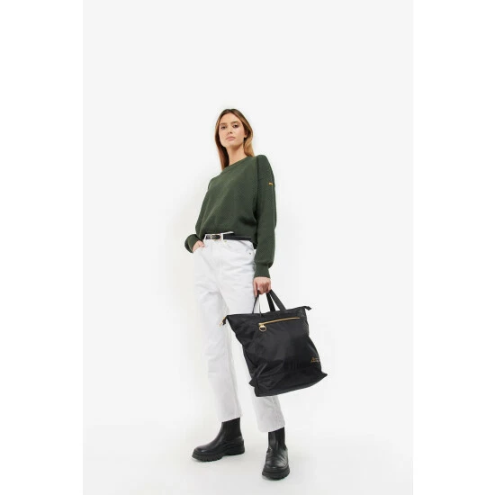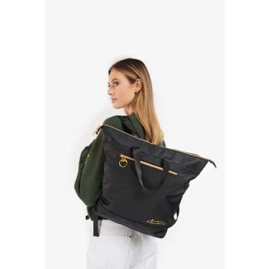 Soft constructed backpack with outer front zipped pocket, grab handles, adjustable shoulder straps and mesh panel to outer back. Can be used as a tote bag or a backpack.