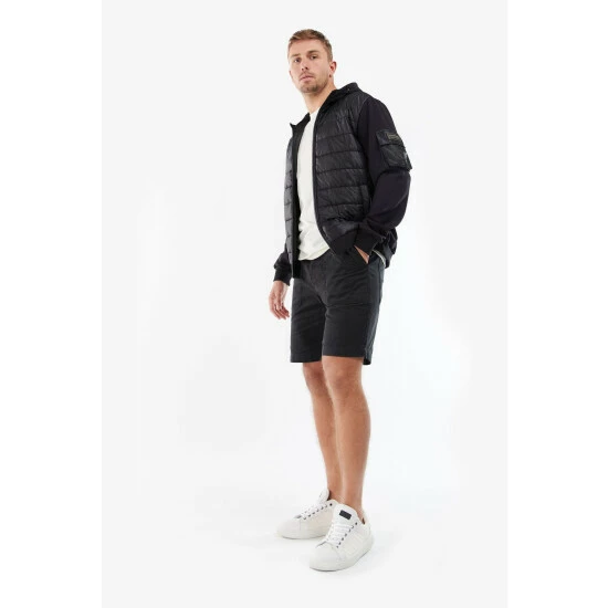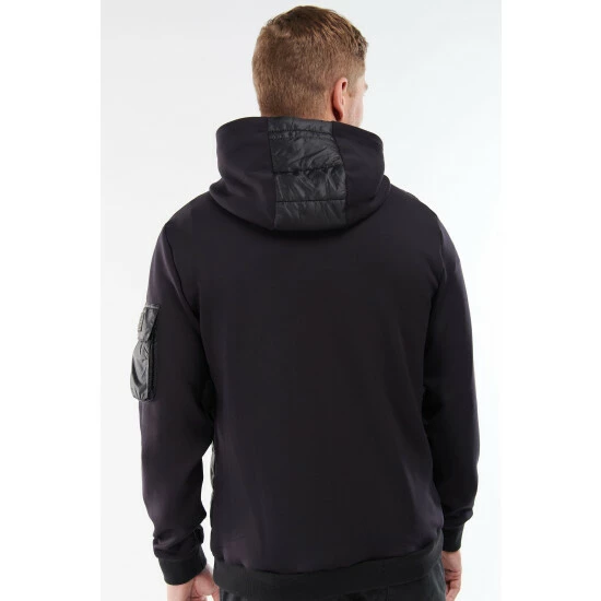 Sport style garment with baffle quilted front body, zip fastening and three piece hood. This style features two lower welt pockets, a patch pocket to the left sleeve, rib cuffs and hem.