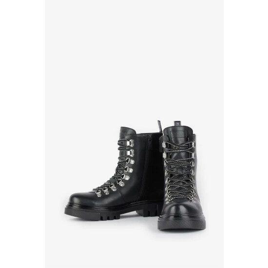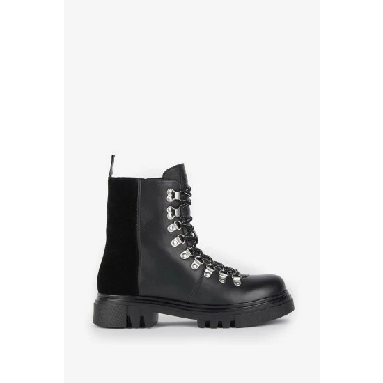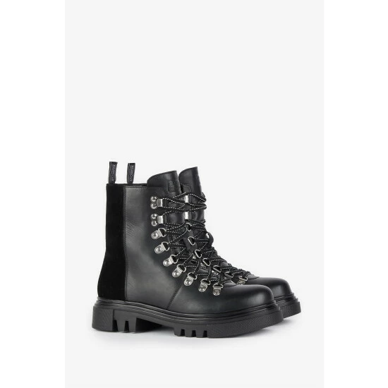 A stylish hiker boot crafted from supple nappa leather, featuring a branded woven pull loop.