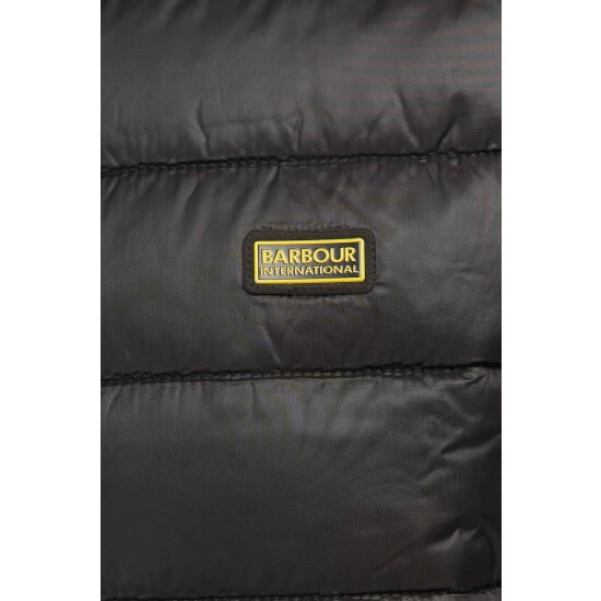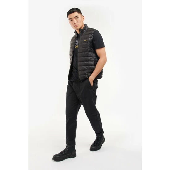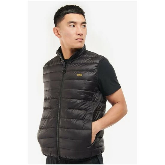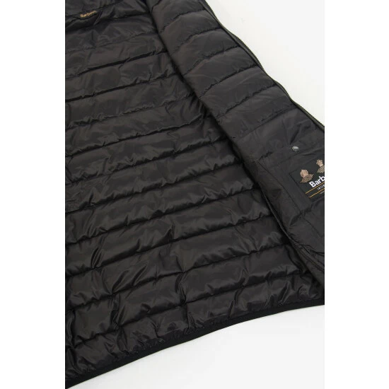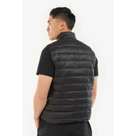 Baffle quilted gilet with zip through fasten, lycra bound armholes and hem, pockets in side seam and tonal colour inner.