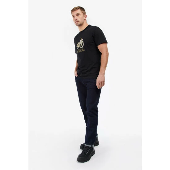 Short sleeve, crew neck single jersey cotton T-shirt with rib to collar and branding graphic print to chest.