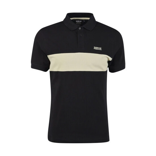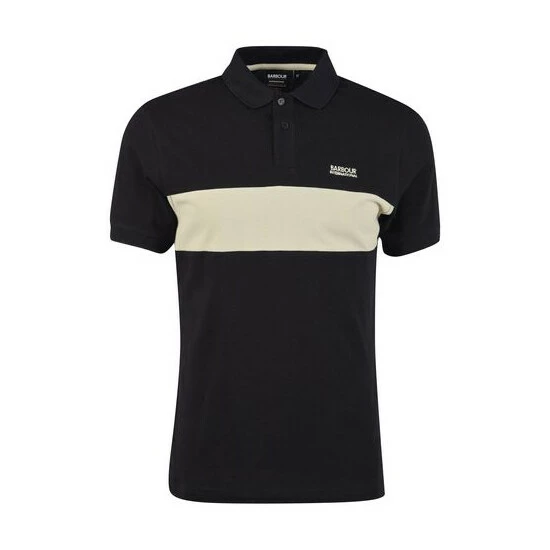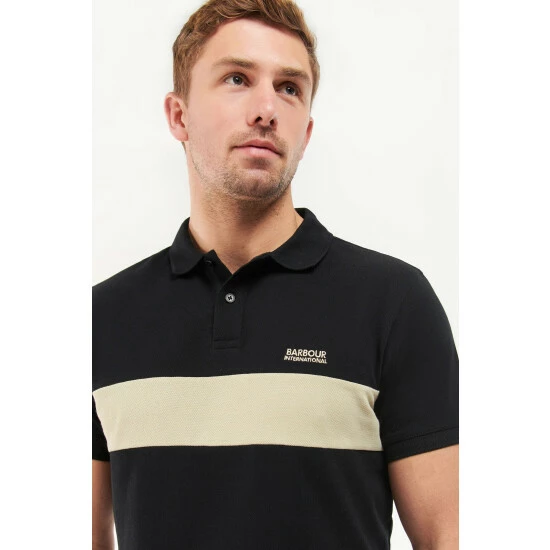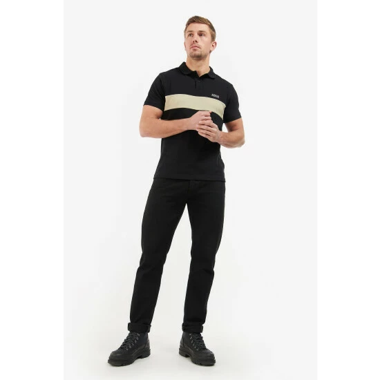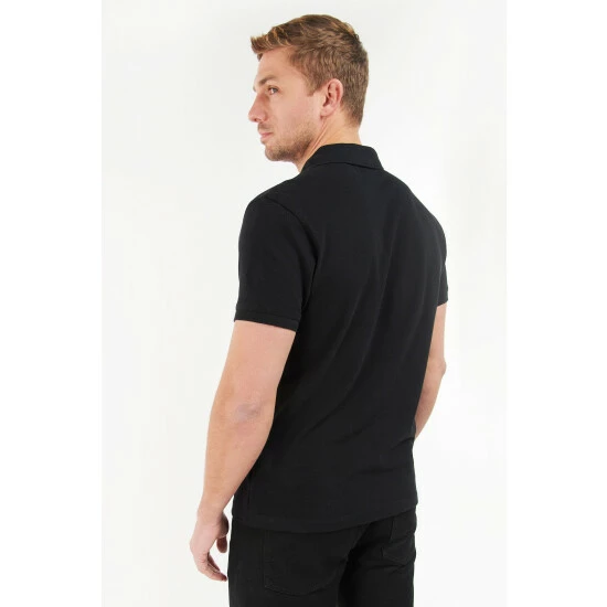 Short sleeve pique polo with contrast stripe detail to chest, rib to collar and cuffs and a contrast branded logo embroidery to chest.
