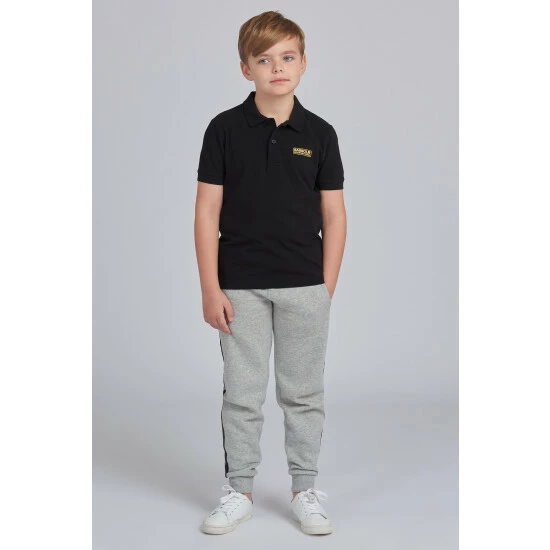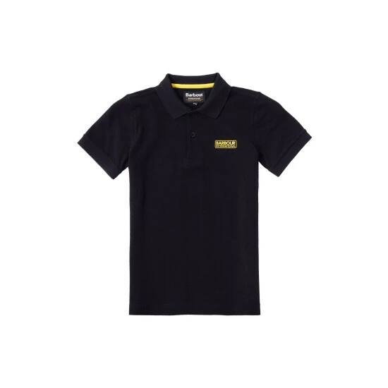 Essential short sleeve polo shirt with rib collar and cuffs, and contrast Barbour International branding.