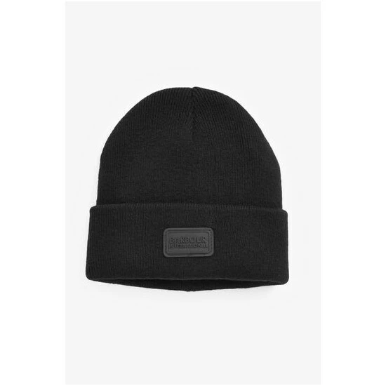 Mini Me of the mens Watchcap style knitted beanie, with turn back hem edge and branded badge to outer front.