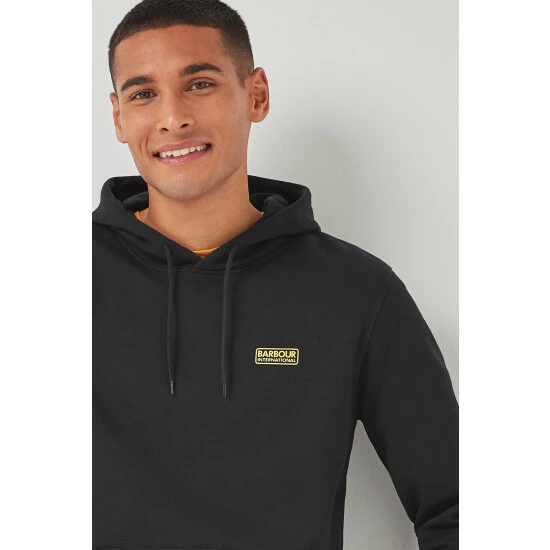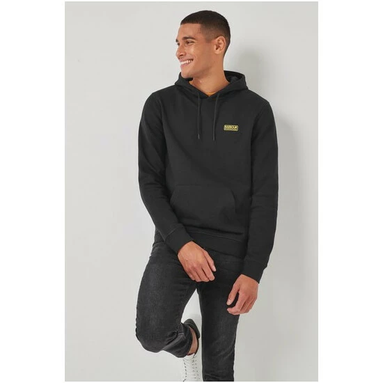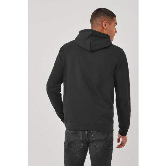 Essential long-sleeve hoodie with branded ring zip puller, rib to cuffs and hem and silicone branding to chest.
