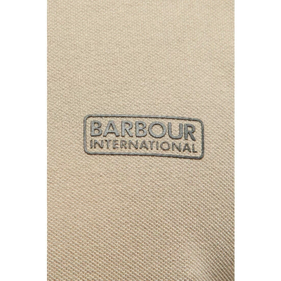 Carry forward essential polo style with short sleeves, half button down with rib to collar and cuffs and Barbour® International branding trim pack set up.