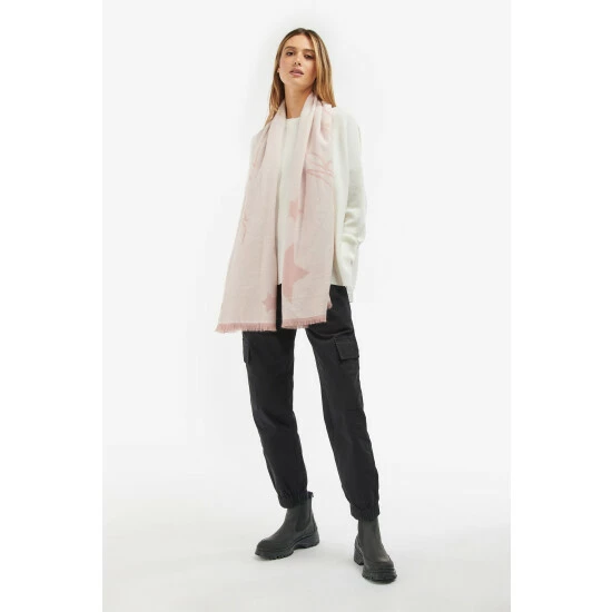 Supersoft scarf featuring Barbour® International script logo and star jacquard design with frayed hem edge.