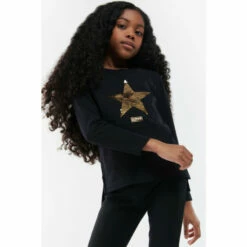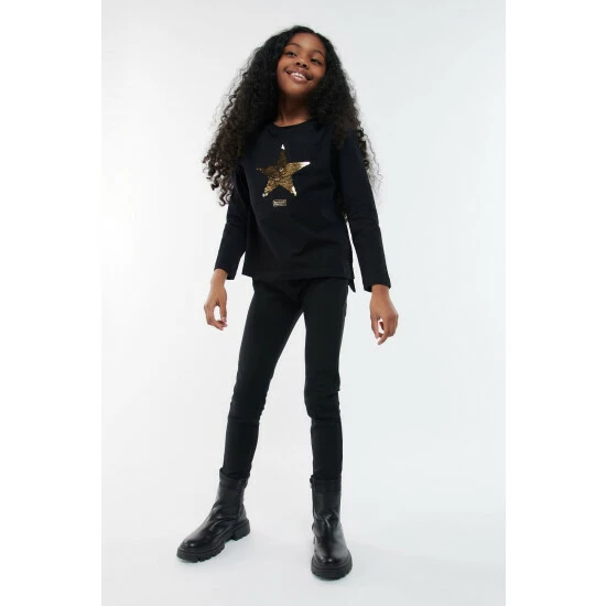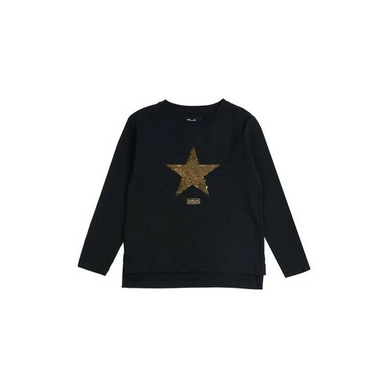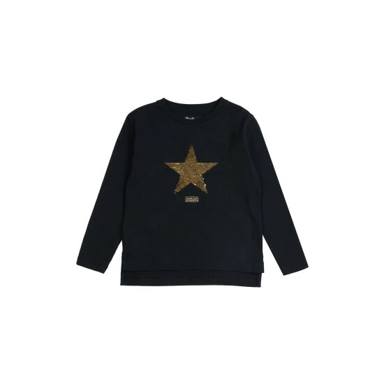 Long sleeve cotton T-shirt featuring reversible sequin star graphic and printed foil lozenge to chest.