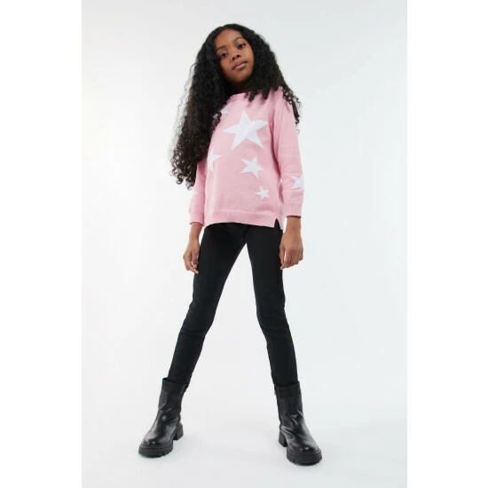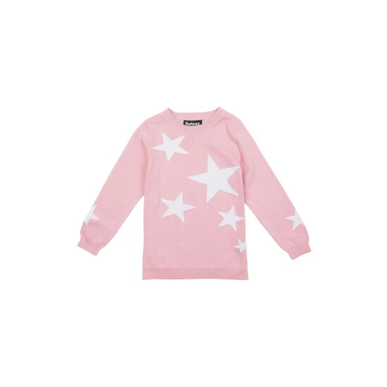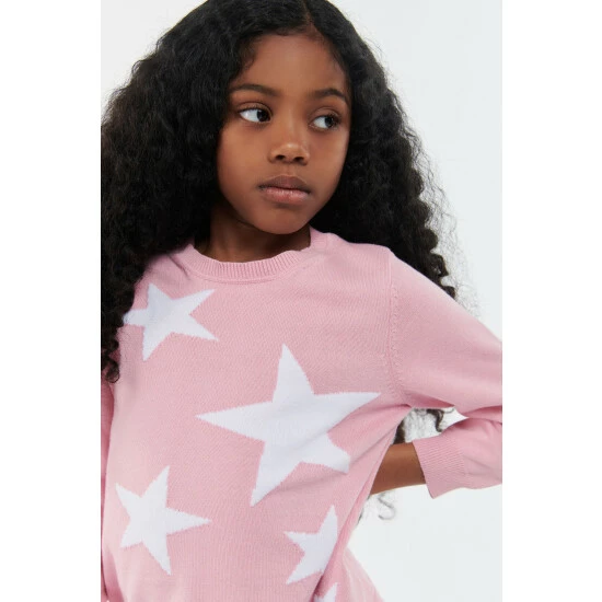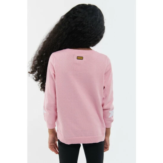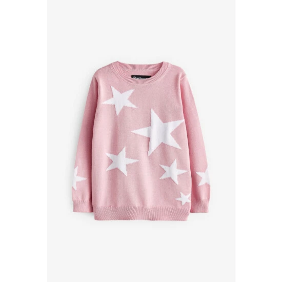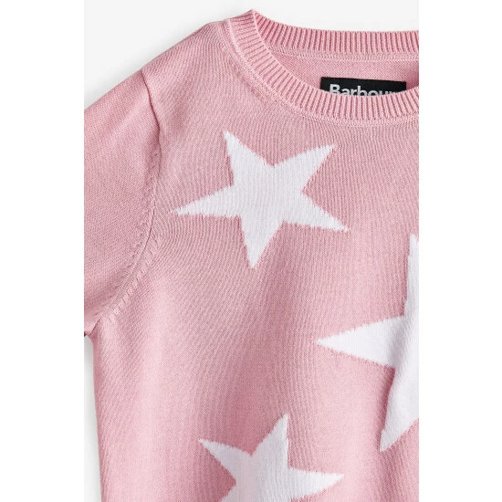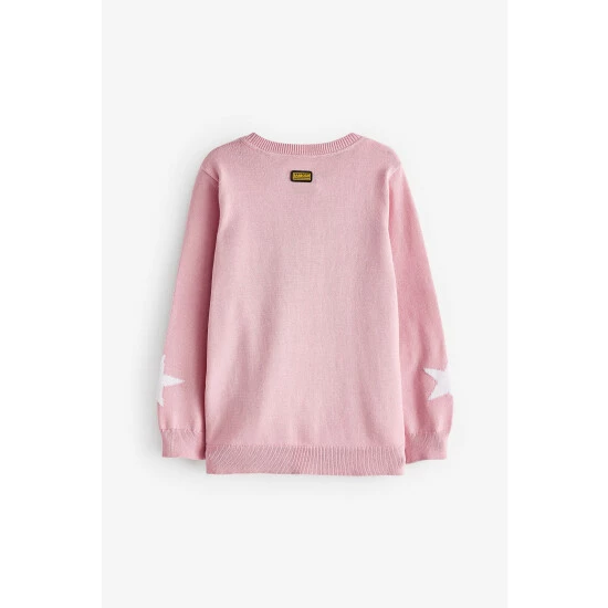 Long sleeve cotton knit with star intarsia design to front body and sleeve and silicone ID badge to back neck.