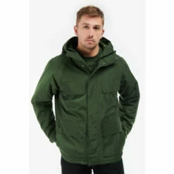 The Barbour® International Oxford jacket boasts a waterproof design with a fixed hood, front zip fastening and a concealed stud front fastening with baffle quilt lining for premium attention to detail. Featuring two chest pockets and two lower patch pockets, this jacket is finished with a Barbour® International badge on the left sleeve.