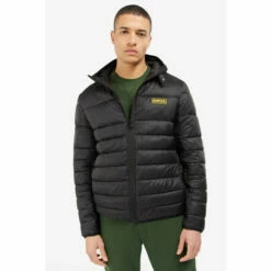 Showcasing an all-over baffle design, the Barbour® International hooded essential quilted jacket boasts unwavering style with side entry pockets and a large comfy hood. The perfect outerwear staple, this jacket features a throat tab and is finished with a Barbour® International badge on the left sleeve.