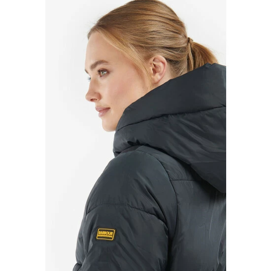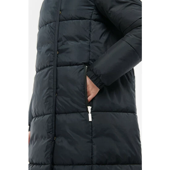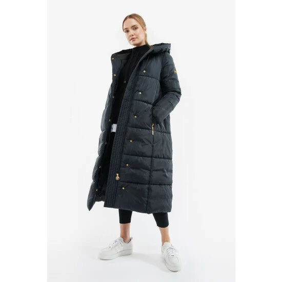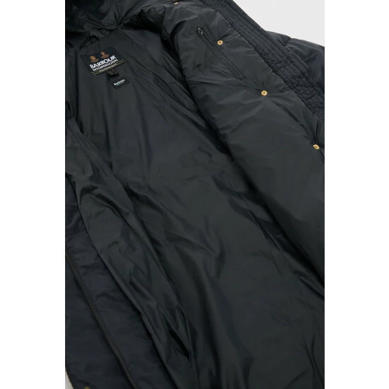 Maxi baffle style with a fixed hood. This style features a zip fastening under the front placket, zip pockets and elasticated cuffs.
