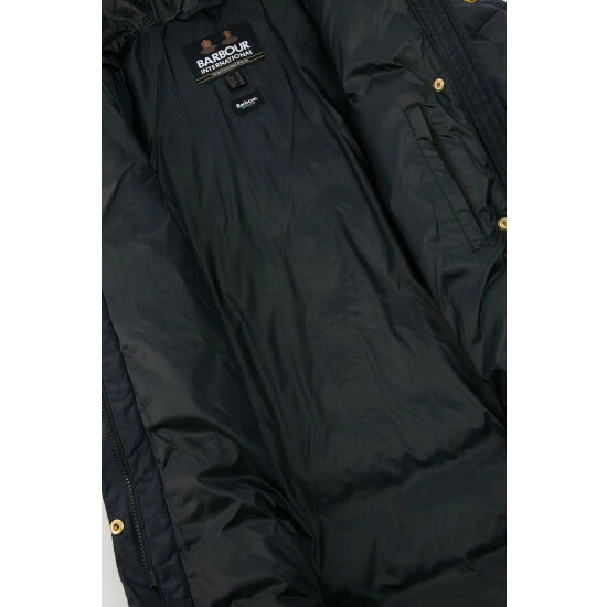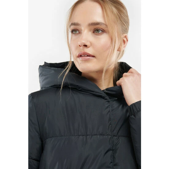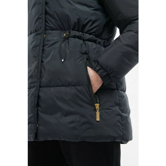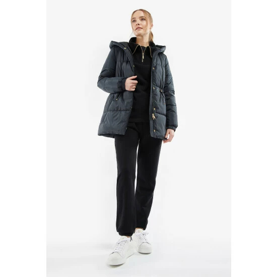 Mid length baffle style with a fixed hood. This style features a zip fastening under the front placket, zip pockets, elasticated cuffs and waist drawcord for a flattering fit.