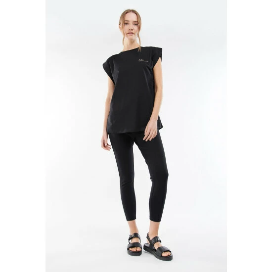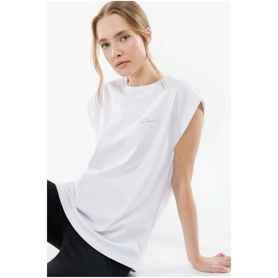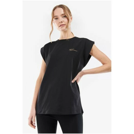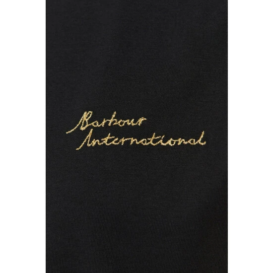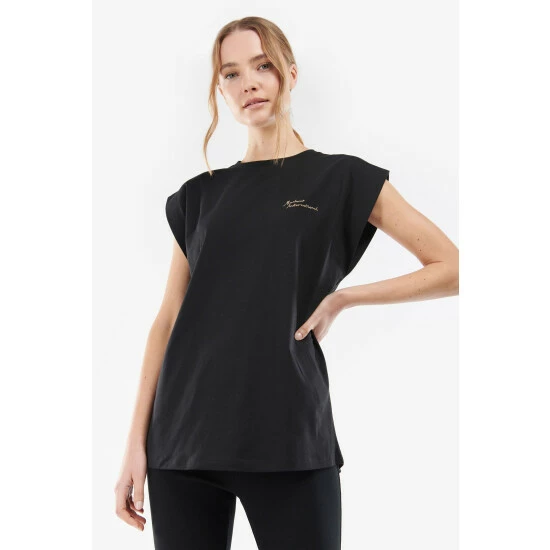 Crew neck cotton vest top with grown on cropped sleeves, a curved hem, Barbour® International script embroidery to left chest and ID badge to back neck.