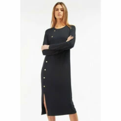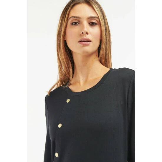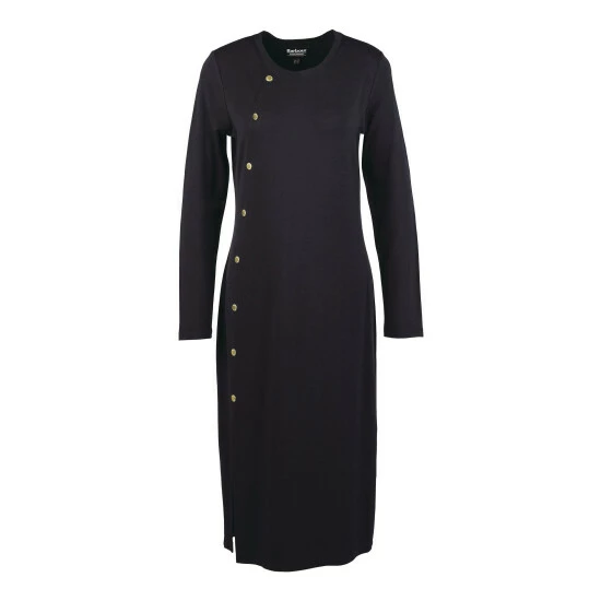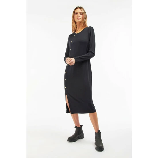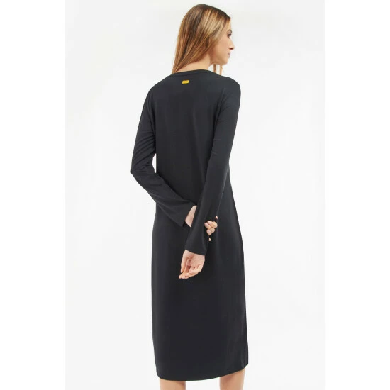 Soft jersey dress featuring a branded stud panel down the side, long sleeves and side split detail.