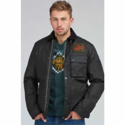From the Steve McQueen collection, the Barbour® International Workers Wax jacket adds a layer of subtle sophistication to any outfit, featuring square quilted lining for comfort and warmth as well as a corduroy collar for a complementary fabric contrast. A studded front placket conceals a zip for weather protection with adjustable cuffs and hem for the perfect fit. Two welt pockets and a studded chest pocket add useful storage space without foregoing style. A Barbour® International Steve McQueen embroidery patch features to the wearer s left chest.